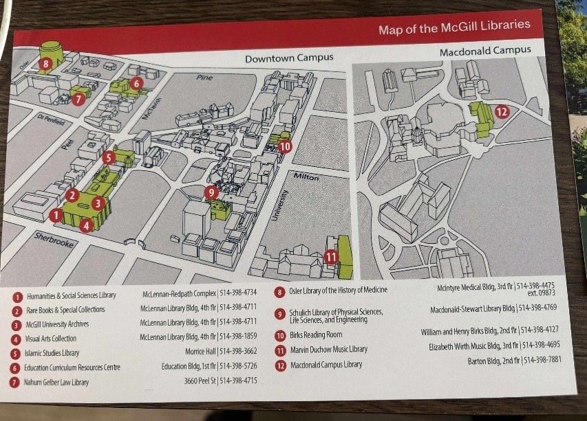 首頁Mcgill University 圖書館(一) Mcgill University 圖書館(一)作者: 管理員 / 2025 年 10 月 26 日 曾亮維撰寫圖書館一直是我最愛待的地方,從雄中到長庚大學,再到長庚醫院林口跟桃園的圖書館、史語所的傅斯年圖書館,舊書的香味特別迷人,也承載了重要的記憶作為學術單位,我想圖書館是一間大學的靈魂,Mcgill有許多風格各異的圖書館,蒐集與探索圖書館便成為我的樂趣之一因為校內圖書館眾多,學校也發行了各個圖書館的書籤跟地圖 左圖上排從左到右:法律圖書館、醫學歷史圖書館、音樂圖書館、伊斯蘭研究圖書館、Birks閱覽室(宗教圖書館)下排左到右:Macdonald校區圖書館(我所在的是Downtown Campus)、人文社會圖書館、稀有書籍收藏、視覺藝術收藏、麥吉爾檔案不過除卻Macdonald校區圖書館,仔細看地圖的話,其實稀有書籍收藏、視覺藝術收藏、麥吉爾檔案都是和人文社會圖書館在一起的,也就是連在一起的Mclennan-Redpath library這篇將先記錄我去過的Mclennan-Redpath library、伊斯蘭研究圖書館、Birks閱覽室(宗教圖書館)、法律圖書館剩下的還沒去過,留待下篇再記錄(如果有的話) Mclennan-Redpath library 來到一所世界知名的大學,不免期待著會有那種在超古老古蹟圖書館裡閱讀沉思的機會。再加上先前在Campus store看到Redpath library的拼圖(也買了一個回家拼),便一直很期待看到圖片中的模樣 結果不管怎麼走,就是走不到Redpath舊照片裡的大廳,查了一下才發現圖片裡Redpath reading room已經變成Redpath hall了(大學禮堂),平常是不開放的。現在的Mclennan-Redpath library雖然也是一個舒適的圖書館,但就是現代圖書館的樣子了,令人好生失望失望歸失望,初來乍到也是要探索一番,進到圖書館裡,門口的一句話我就很喜歡 「我走進我的圖書館,整個歷史便在我眼前展開。」 “I go into my library and all history unrolls before me.” – Alexander Smith 這裡較特別的大概是四樓的稀有書籍收藏室,此時剛好也有一些珍稀書籍特展,不過正式的瀏覽室要有預約書籍才能進去,就等找到有趣的材料再來了另外,為了釋放出圖書館的空間,大多數的書架已經空了,要借閱的話學校在另外一個地方興建了自動化機器人倉儲 伊斯蘭研究圖書館 伊斯蘭研究圖書館可以說是除Mclennan-Redpath library以外外觀最氣派的,實在是特別好看,裡面也有很多佈制精巧的裝飾和座位,可以挑選喜歡的Chill小角落窩著,多有伊斯蘭風格,可惜唯一的缺點是座位不多 Birks閱覽室(宗教圖書館) 這個是我最喜歡的圖書館之一,原因無他,就是最古色古香,裡面甚至有一個小教堂,初來這裡時特別興奮,進入閱覽室要脫鞋子,踩在木地板上,終於一圓在夢幻古蹟圖書館裡讀書的小小夢想 Birks reading room氣派的門 大秦景教流行碑複製品 閱覽室對面的小教堂 古色古香的閱覽室 法律圖書館 法律圖書館其實離我租屋的地方最近,裡面其實也有一些法學相關展覽,不過我並不是很懂,也就不太有興趣。圖書館方面也是一個比較現代化的設置,最特別的我覺得是這個電話亭讀書空間,不知道隔音是不是超級好,搞不好都可以唱KTV了 整體來說,整個Mcgill University,各個系所加上圖書館,都有一個很大的共同特色,就是座位很多,而且有各式各樣不同型制的座位,任君挑選,這點是我和易芩都覺得這邊很棒的地方,這也會讓學生更願意待在圖書館吧!雖然這裡學生也很習慣在戶外、樹下讀書及用電腦就是了,這也是台灣人較不習慣的,怕泥土跟蚊子都來不及了