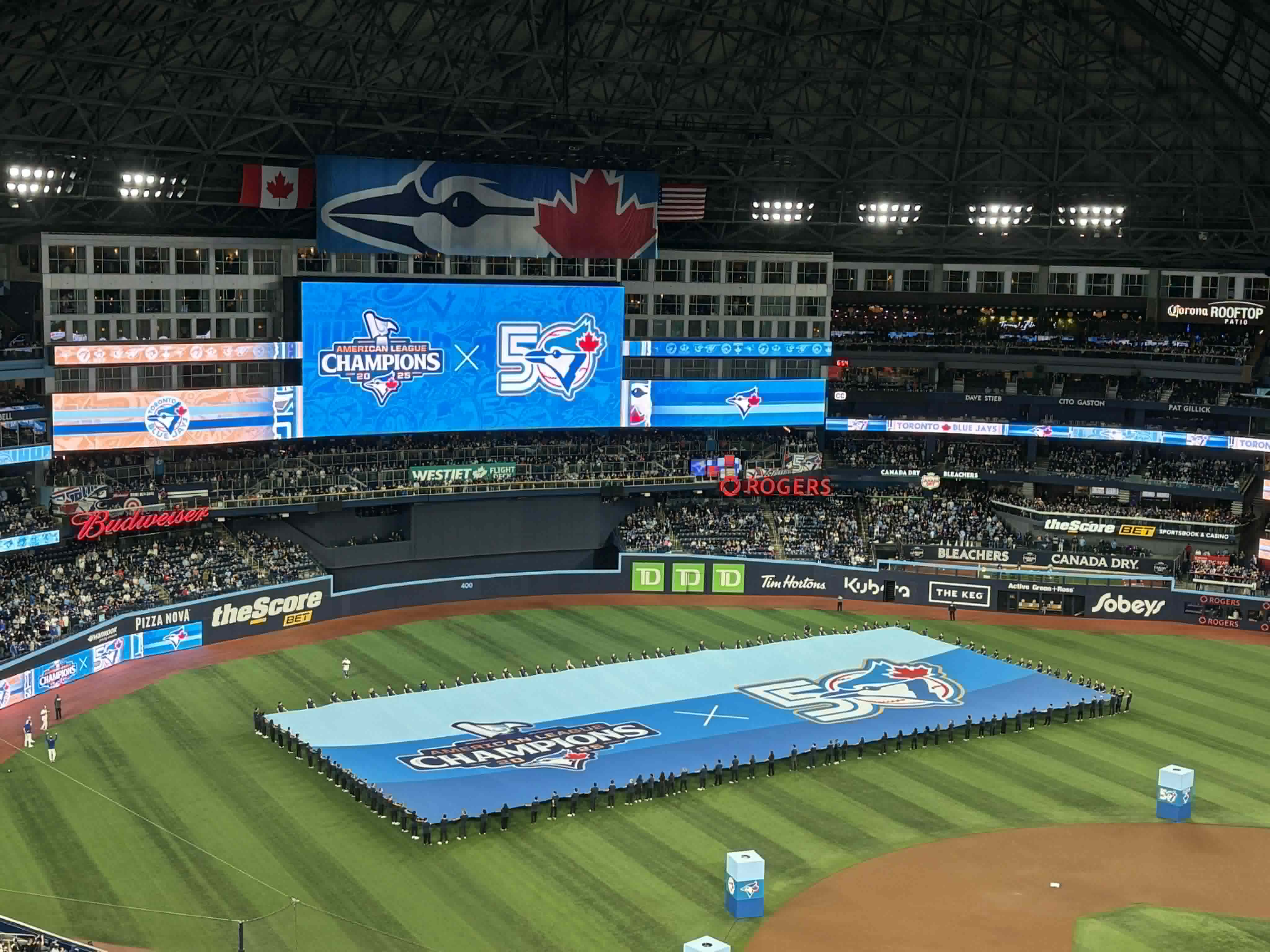 這次看的是本賽季的開幕賽,因為藍鳥去年在美國聯盟拿了冠軍跟國家聯盟冠軍道奇打了世界大賽,雖然最後輸了,早已點燃了大家的熱情,所以門票難搶又超爆貴,我們又剛好只卡了一個時間可以看,就算是最遠的Level 5票價一人也買到170加幣,聽在地人說最便宜只要20元@@