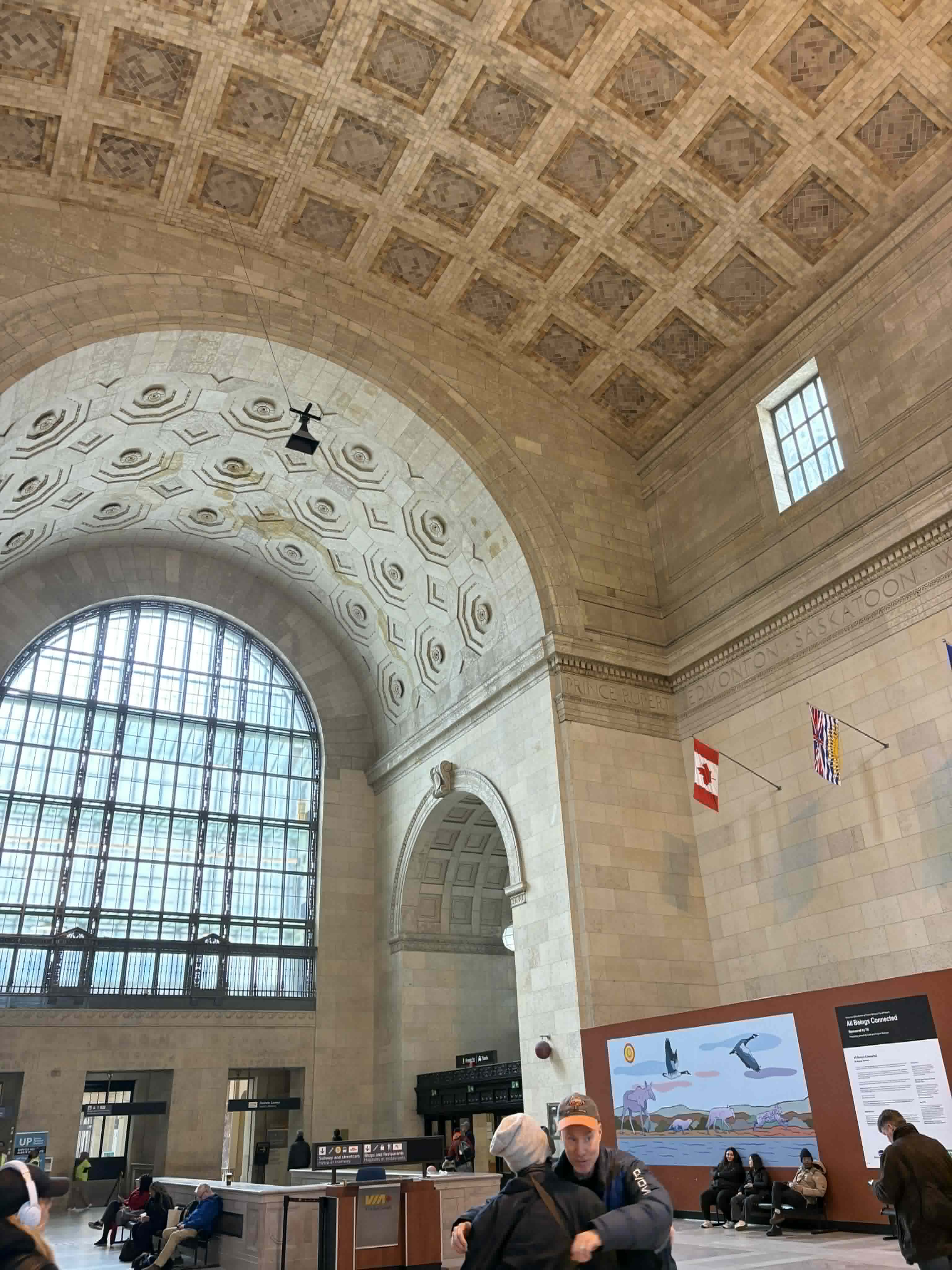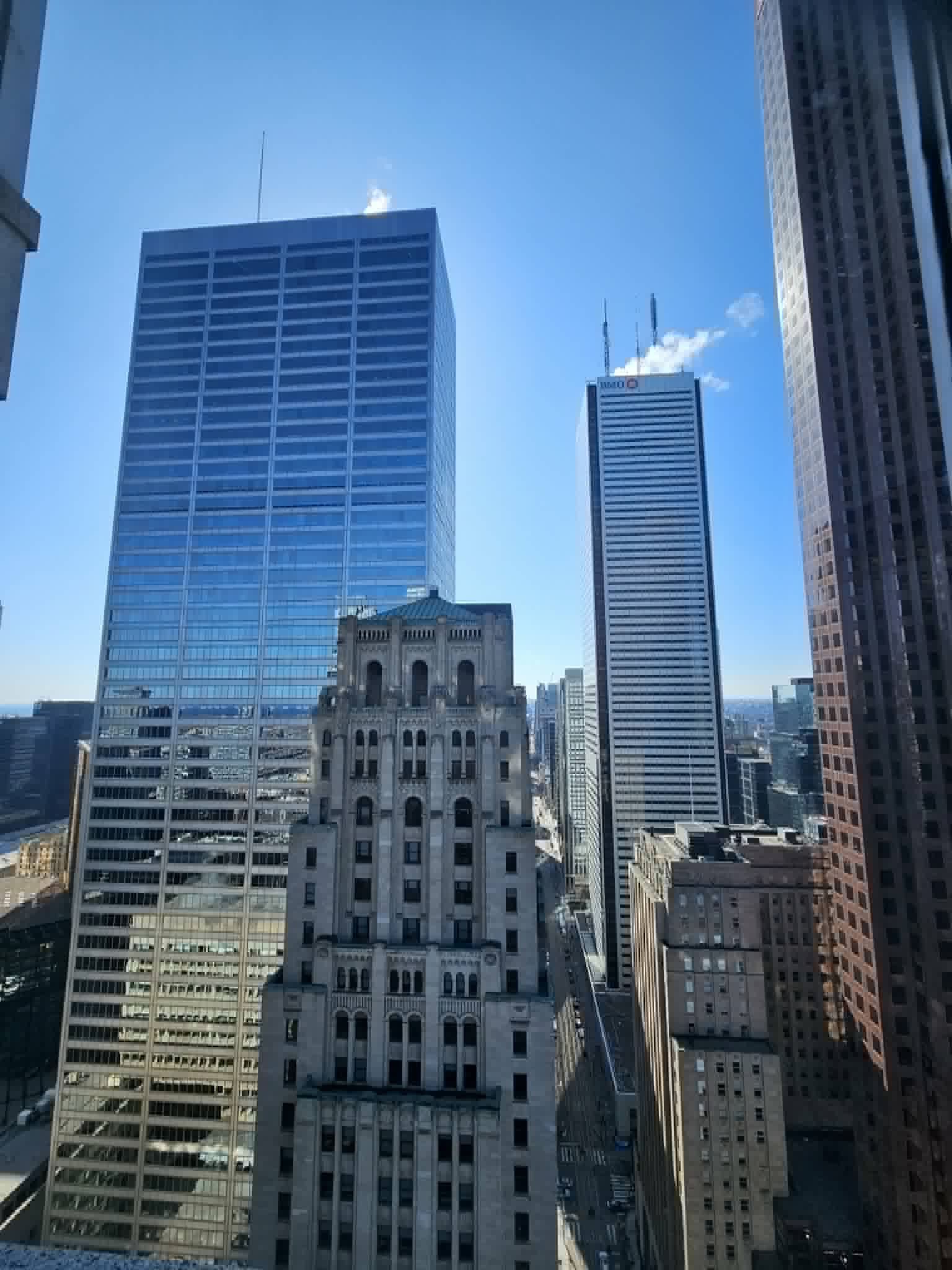 多倫多不愧是大城市(人口七百萬,蒙特婁四百萬),火車站實在是宏偉氣派(蒙特婁的也不差,只是稍微相形見絀),易芩覺得街上樣子很像他想像中的英國,從蒙特婁來的我們感覺自己很像鄉巴佬,不過也有聽住在多倫多的同學說,他更喜歡蒙特婁,蒙特婁走幾步街道風格就會轉換,多倫多卻像是四面八方無盡延伸的都市叢林,這倒也是真的,也可能是因為法文的關係,我個人覺得多倫多就是個英文國家,異國文化感沒有蒙特婁重,還是懷念蒙特婁的英法混合的「Bonjour Hi」